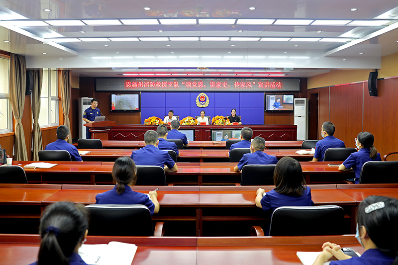 為深入推進(jìn)黨史學(xué)習(xí)教育,弘揚(yáng)黨的家風(fēng)建設(shè)傳統(tǒng),近日,恩施州消防救援支隊(duì)邀請“全國文明家庭”李道坤等家庭代表來隊(duì)開展“頌黨恩·講家史·傳家風(fēng)”宣講活動(dòng)。政委胡濤、政治部主任戴祥林出席活動(dòng),支隊(duì)機(jī)關(guān)和各大隊(duì)、站全體指戰(zhàn)員、專職消防員參加活動(dòng)。