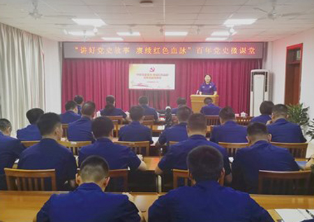 以深學(xué)細(xì)研為焦點(diǎn),統(tǒng)籌結(jié)合,創(chuàng)新載體。一是豐富形式,多樣“學(xué)”。發(fā)揮小載體、小平臺、小教育“快、活、靈”優(yōu)勢,開設(shè)“跟著阿水學(xué)黨史”黨史學(xué)習(xí)專欄,建立“每日一學(xué)”制度,便于指戰(zhàn)員利用碎片化時間抓好黨史學(xué)習(xí);拍攝“唱好一支歌 筑牢忠誠魂”慶祝建黨百年紅歌快閃,以黨史為脈絡(luò)、音樂為載體厚植愛黨愛國情懷,推動黨史教育邁深走實(shí)。二是內(nèi)外統(tǒng)籌,廣泛“講”。聚焦外部“紅色資源”,先后組織指戰(zhàn)員前往中共一大會址、龍華烈士陵園、沂蒙精神展館等紅色場館參觀踐學(xué),通過現(xiàn)場聽、實(shí)地學(xué),深化教育成效;深挖內(nèi)部“典型資源”,謀劃開展“凝聚榜樣力量 爭當(dāng)忠誠衛(wèi)士”先進(jìn)典型故事分享會,以身邊的故事激發(fā)奮進(jìn)力量,激勵指戰(zhàn)員不忘初心,立足本職。三是聯(lián)系實(shí)際,深刻“悟”。舉辦4期“講好黨史故事 賡續(xù)紅色血脈”百年黨史微課堂,先后有18名不同級別、不同崗位的指戰(zhàn)員登上講臺結(jié)合崗位實(shí)際,交流心得感悟,通過邊學(xué)習(xí)邊思考、邊交流邊借鑒,梳理我黨光輝歷史,重溫我黨崢嶸歲月,用黨的奮斗歷程和偉大成就鼓舞斗志、明確方向。