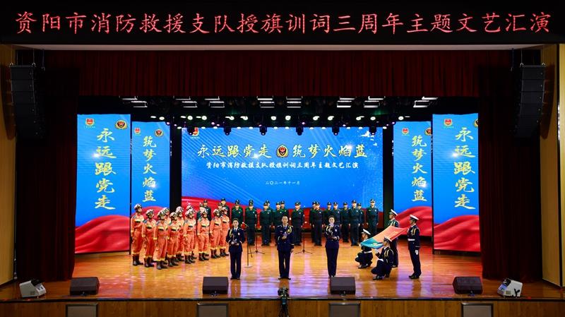 為深入學(xué)習(xí)踐行習(xí)近平總書記重要訓(xùn)詞精神,集中展現(xiàn)消防救援隊伍“對黨忠誠、紀(jì)律嚴(yán)明、赴湯蹈火、竭誠為民”的精神風(fēng)貌,11月4日下午,資陽市消防救援支隊舉辦“永遠(yuǎn)跟黨走 筑夢火焰藍(lán)”授旗訓(xùn)詞三周年主題云文藝匯演。為配合疫情防控,此次匯演以視頻錄播的形式進(jìn)行。
