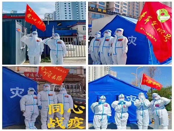 強化儀式感召奮進力量。臨時黨委在防疫一線隆重舉行“黨群同心 防疫同行”主題黨日活動,舉行重溫誓詞儀式,在隊旗下接受心靈的凈化和洗禮,一句句的鏗鏘誓言都表達了對黨和人民的無限忠誠,多措并舉激勵參戰(zhàn)人員真正履職盡責、敢打敢拼。全體志愿者從最一線執(zhí)勤點位的戰(zhàn)場中走來、在召之即來的號角中集結(jié),面向黨旗莊嚴宣誓,重溫入黨誓詞,表達不忘初心跟黨走、牢記使命勇?lián)數(shù)腻P錚誓言。各級干部圍繞教育主題開展研討交流,從學(xué)習(xí)中碰撞出思想火花,在交流中凝聚思想共識。3個分隊結(jié)合實際,廣泛開展動員講評、戰(zhàn)地宣誓等活動,激發(fā)士氣、鼓舞斗志,主動肩負起黨和人民賦予的時代重任。同時,在24個執(zhí)勤點位醒目位置懸掛紅色旗幟,每個戰(zhàn)地模塊黨旗隊旗飄揚,營造了濃厚的戰(zhàn)地氛圍,以隊旗為指引,以訓(xùn)詞為號令,用高度的事業(yè)心和責任感,立足崗位,砥礪前行。