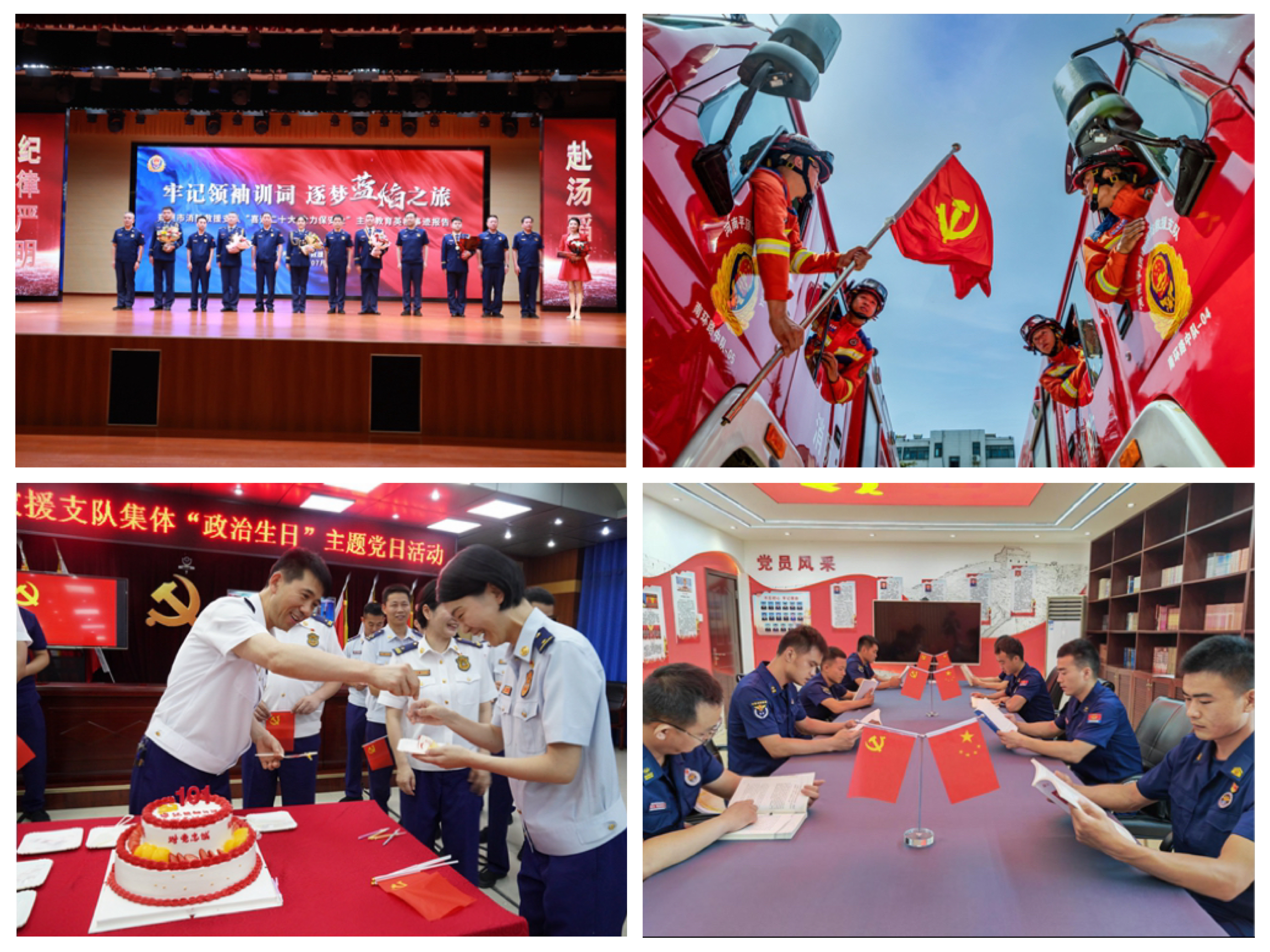 各級黨組織結(jié)合實際,采取參觀紅色基地、觀看紅色電影、閱讀紅色書籍、拍攝創(chuàng)意影像等多種形式,組織開展形式多樣的慶“七一”系列主題黨日活動。新鄉(xiāng)支隊組織新發(fā)展黨員在延浚汲淇四縣邊抗日辦事處舊址舉行“參觀革命舊址?重溫紅色記憶”主題黨日活動,鄭州、開封、商丘支隊舉行“七一”升旗儀式暨重溫入黨誓詞活動,周口支隊組織新入職消防員參觀踐學(xué)黨建黨史館暨隊史館,駐馬店支隊開展“黨旗下成長”分享活動,發(fā)動廣大黨員指戰(zhàn)員講述自己成長經(jīng)歷,堅定聽黨話、跟黨走的思想自覺和行動自覺。