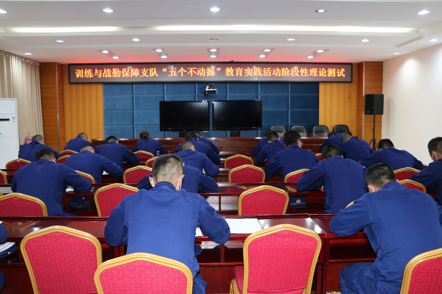 會議結(jié)束后,支隊組織機關(guān)、中隊全體指戰(zhàn)員進行階段性理論測試。