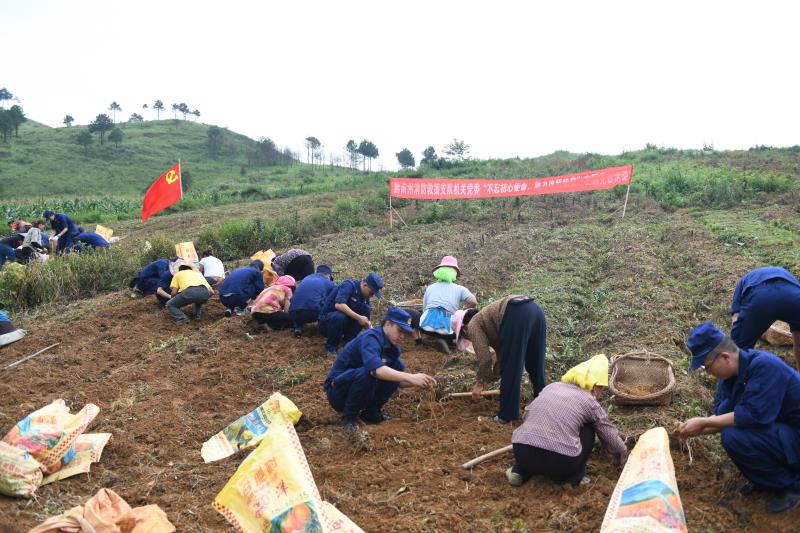 為慶祝中國(guó)共產(chǎn)黨建黨99周年,在隊(duì)伍開展“五個(gè)不動(dòng)搖”教育實(shí)踐活動(dòng)之際,教育引導(dǎo)機(jī)關(guān)黨員牢記領(lǐng)袖囑托、忠誠(chéng)履行使命、立足崗位積極奮進(jìn),充分發(fā)揮機(jī)關(guān)各級(jí)黨組織、黨員干部在推動(dòng)機(jī)關(guān)黨建工作中的模范帶頭作用,積極響應(yīng)習(xí)總書記精準(zhǔn)扶貧的重要指示,全力推動(dòng)鄉(xiāng)村振興,切實(shí)解決群眾的現(xiàn)實(shí)需求,6月30日上午,黔南州消防救援支隊(duì)機(jī)關(guān)黨委組織開展了“不忘初心使命、助力攻堅(jiān)扶貧”主題黨日活動(dòng),利用雨季間隙,幫助都勻市勻東鎮(zhèn)壩固村馬頭寨開展“太子參”采摘。