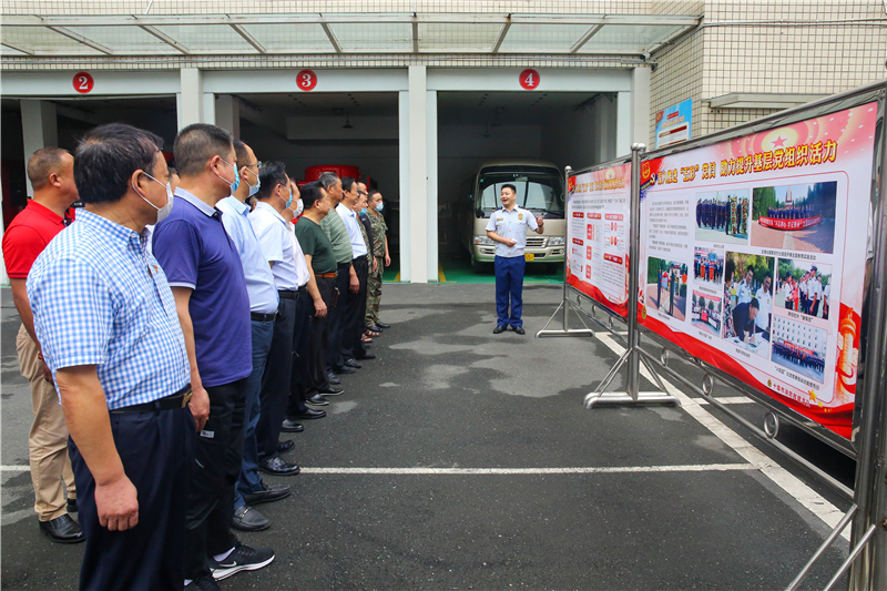 市工商聯(lián)一行來到支隊機(jī)關(guān),聽取并實地參觀了支隊“五彩黨日”黨建工作經(jīng)驗和消防器材裝備等。隨后參加了“共話‘火焰藍(lán)’、同鑲黨旗紅”主題座談會,全國“退役軍人先進(jìn)個人”、“最美荊楚退役軍人”唐子衛(wèi)做了先進(jìn)事跡報告,退役軍人企業(yè)家、行業(yè)商會負(fù)責(zé)人紛紛發(fā)言,談軍旅生活、談成長經(jīng)歷、談成功經(jīng)驗。