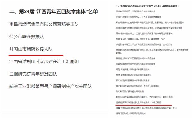 在五四青年節(jié)到來之際,團(tuán)江西省委、省青聯(lián)決定,授予第24屆“江西青年五四獎?wù)录w”和“江西青年五四獎?wù)隆狈Q號,井岡山市消防救援大隊(duì)和貴溪市消防救援大隊(duì)政治教導(dǎo)員游振根榜上有名。
