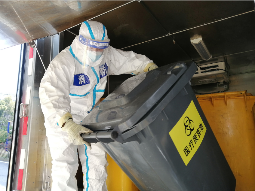 一桶醫(yī)療廢棄物,輕的有二三十公斤,重的超過七八十公斤。穿著密不透風(fēng)的防護(hù)服,即使站立不動都會不停冒汗,而陳建和隊(duì)員們要一桶一桶搬上車,運(yùn)到三四十公里外的處理站,再一桶一桶卸下來。