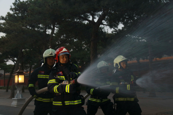 2014年蔡瑞調(diào)到特勤站任職,他發(fā)現(xiàn)這里沒有艱苦卓絕的滅火戰(zhàn)斗,沒有生死一線的救援時刻,更沒有寬敞方便的營房;有的是每年近萬公里的巡邏檢查,有的是每年上百次的執(zhí)勤安保任務(wù),有的只是在故宮夏注水、冬鑿冰、春除草、秋清葉。