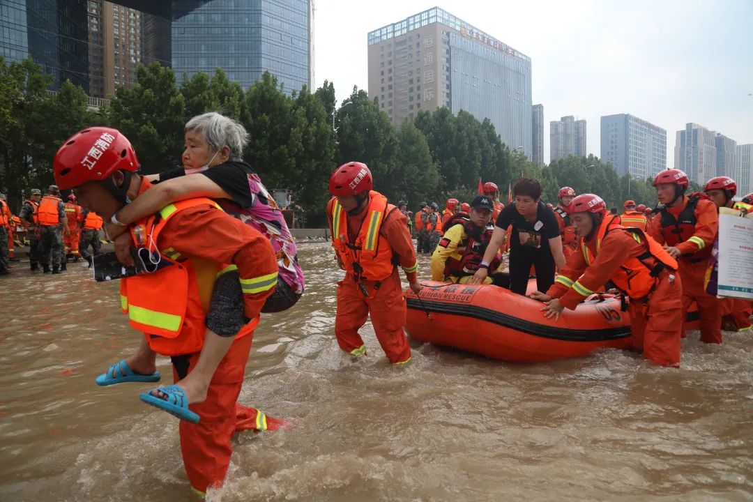 2021年7月20日,接應(yīng)急管理部消防救援局增援命令,江西省消防救援總隊聞令而動,第一時間啟動抗洪搶險救援跨區(qū)域增援預(yù)案,總隊黨委連夜召開緊急會議,一次性調(diào)集5個支隊、419名消防救援人員、68輛消防車、52艘舟艇、2套大型排澇設(shè)備及4000余件套救援裝備,星夜兼程、千里馳援災(zāi)區(qū)。在部局的科學(xué)指揮下,江西總隊前后方緊密聯(lián)動、高效協(xié)同。前方指揮部堅持救援、救災(zāi)、救助一體化推進(jìn),參戰(zhàn)消防救援人員視鄭州人民為親人,傾盡全力投入戰(zhàn)斗,經(jīng)過13個晝夜連續(xù)奮戰(zhàn),累計完成132起救援任務(wù),營救和轉(zhuǎn)移遇險群眾1.03萬人,排澇65.3萬噸,清淤排障4.4萬平方米,轉(zhuǎn)運物資26.6噸,場地消殺133.8平方米,為民送水341噸。后方指揮部全程視頻連線指揮,根據(jù)需要及時補充作戰(zhàn)裝備和各類物資,并發(fā)出慰問信,積極走訪參戰(zhàn)消防救援人員家庭,為前方參戰(zhàn)人員解決后顧之憂,與此同時,還號召全省消防救援人員為災(zāi)區(qū)捐款130余萬元。