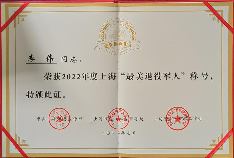上海:李偉同志獲評(píng)2022年度上海市“最美退役軍人”