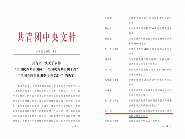 五四青年節(jié)之際,共青團(tuán)中央揭曉了505名全國優(yōu)秀共青團(tuán)員,海東市循化撒拉族自治縣積石消防救援站特勤班班長朱強(qiáng)榮獲“全國優(yōu)秀共青團(tuán)員”稱號。