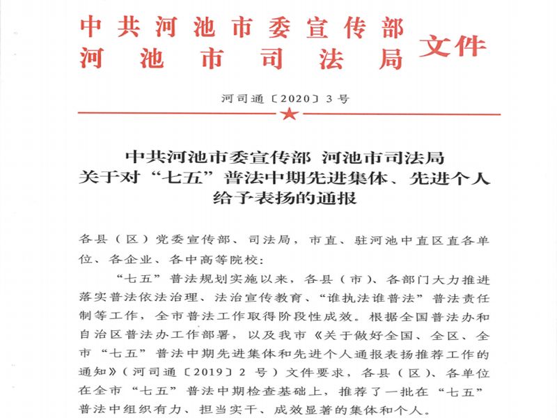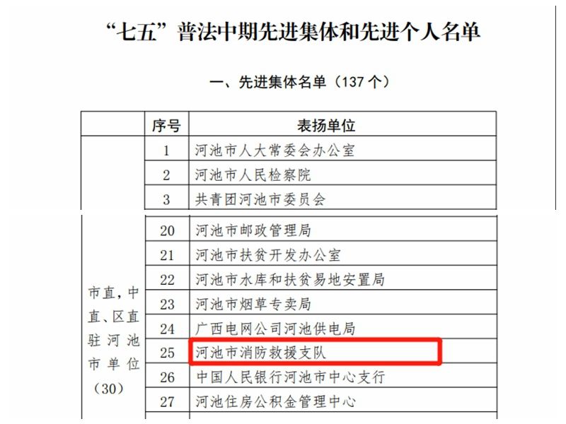 廣西:河池消防被評(píng)為全市“七五”普法中期先進(jìn)集體