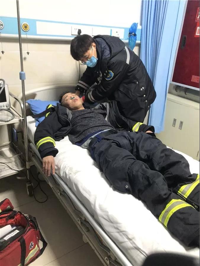 當馬云遠準備同第二批搜救隊員一起對每個房間進行地毯式搜救時,突然間感覺呼吸困難,經(jīng)歷過專業(yè)訓(xùn)練的他告訴自己是空呼氣瓶到達了極限,必須立即撤退。但身處濃煙環(huán)境,已經(jīng)看不到撤離的路線。危機時刻,他立即趴在地上,延著水帶方向向外爬,3米的水帶距離,每向外爬一步都是生的希望。在他用盡全身力氣爬出濃煙火場后,被其他戰(zhàn)友發(fā)現(xiàn),迅速將他架下樓休息。剛到一樓,身體已經(jīng)嚴重透支的他累的失去意識昏了過去,被現(xiàn)場120緊急送往醫(yī)院急救。值得幸運的事,其他三組搜救隊員成功確認6名被困群眾位置,將其救出送往醫(yī)院治療。