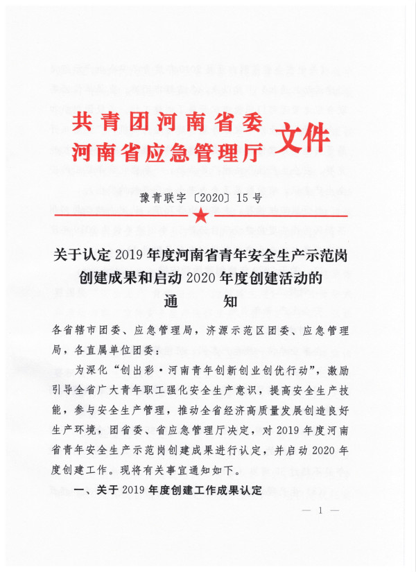 近日,共青團省委、省應(yīng)急管理廳聯(lián)合發(fā)布2019年度河南省青年安全生產(chǎn)示范崗創(chuàng)建成果通知,洛陽市洛龍區(qū)五環(huán)街消防救援站、安陽市林州市紅旗渠消防救援站被認定為“2019年度河南省青年安全生產(chǎn)示范崗”。