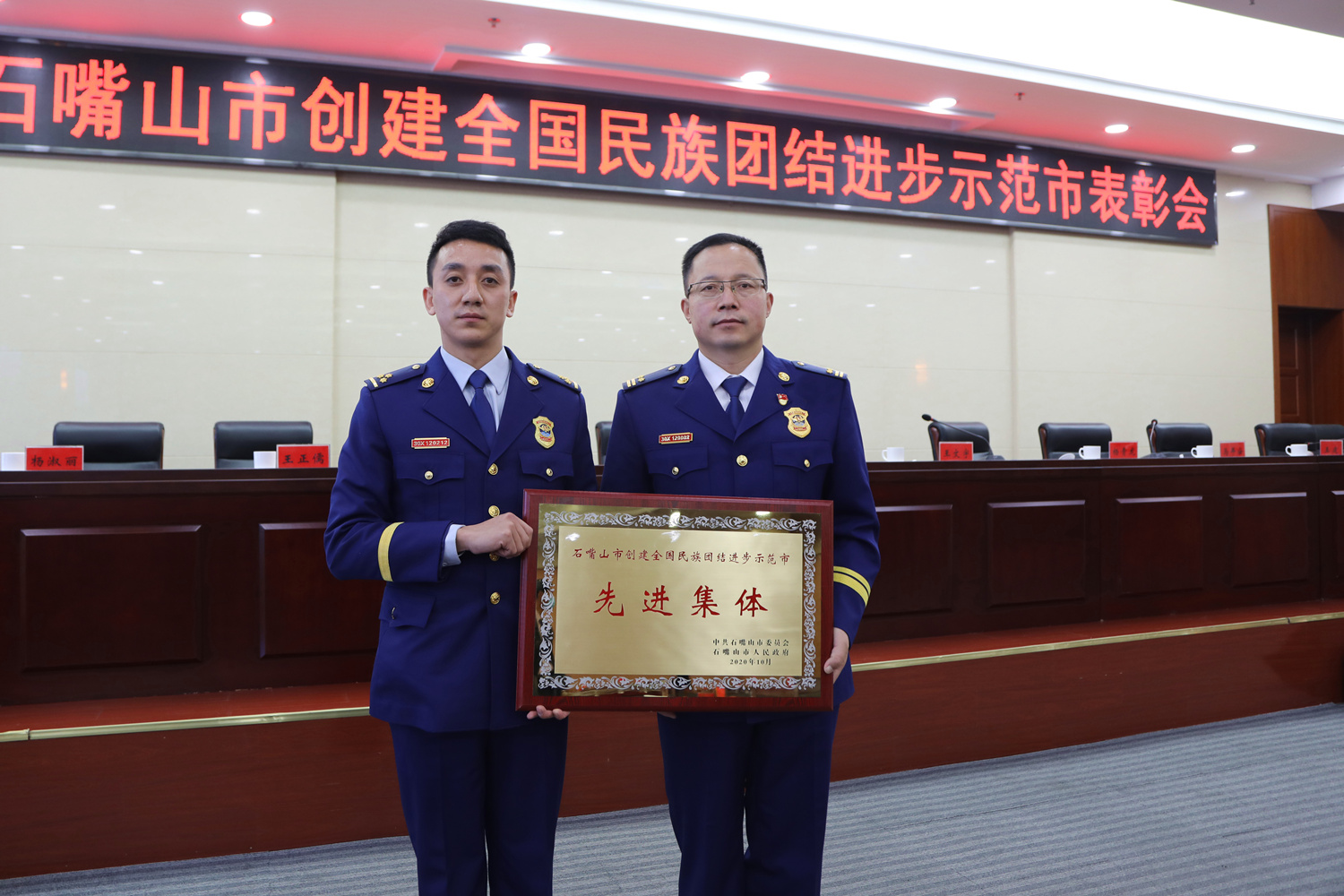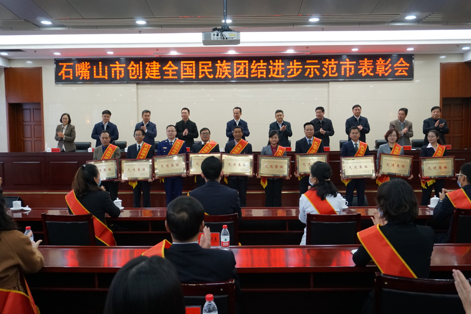 10月23日,石嘴山市“創(chuàng)建民族團(tuán)結(jié)進(jìn)步示范市”表彰會在市行政會議中心召開,受表彰的先進(jìn)集體、先進(jìn)個人代表和各市直機(jī)關(guān)主要負(fù)責(zé)人參加了會議。石嘴山市委書記王文宇,自治區(qū)民委主任、宗教局局長楊青龍,市長張利,市政協(xié)主席馬平安,市人大常委會副主任劉建軍,市委副書記王建等領(lǐng)導(dǎo)出席會議。石嘴山市消防救援支隊(duì)被榮譽(yù)表彰為“石嘴山市創(chuàng)建全國民族團(tuán)結(jié)進(jìn)步示范市先進(jìn)集體”。