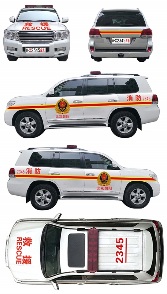 專(zhuān)用號(hào)牌分為汽車(chē)號(hào)牌和摩托車(chē)號(hào)牌兩種。汽車(chē)號(hào)牌每副兩只,分別懸掛在車(chē)輛前后部;摩托車(chē)號(hào)牌為單只,懸掛在車(chē)輛后部。專(zhuān)用號(hào)牌為白底黑字,配以紅色漢字“應(yīng)急”,其中:汽車(chē)號(hào)牌字符共8位,依次為?。ㄗ灾螀^(qū)、直轄市)漢字簡(jiǎn)稱(chēng)、所屬救援隊(duì)伍代號(hào)、四位序號(hào)和漢字“應(yīng)急”;摩托車(chē)號(hào)牌字符共7位,依次為漢字“應(yīng)急”、?。ㄗ灾螀^(qū)、直轄市)漢字簡(jiǎn)稱(chēng)、三位序號(hào)和所屬救援隊(duì)伍代號(hào)。懸掛專(zhuān)用號(hào)牌車(chē)輛外觀(guān)參照國(guó)際通行做法進(jìn)行標(biāo)識(shí)涂裝,車(chē)身前面涂裝“救援RESCUE”字樣,車(chē)身側(cè)面涂裝國(guó)家綜合性消防救援隊(duì)伍徽標(biāo)、“消防”字樣和所屬單位名稱(chēng)、車(chē)輛編號(hào),車(chē)頂涂裝車(chē)輛編號(hào),車(chē)身兩側(cè)及車(chē)輛尾部涂裝裝飾條。