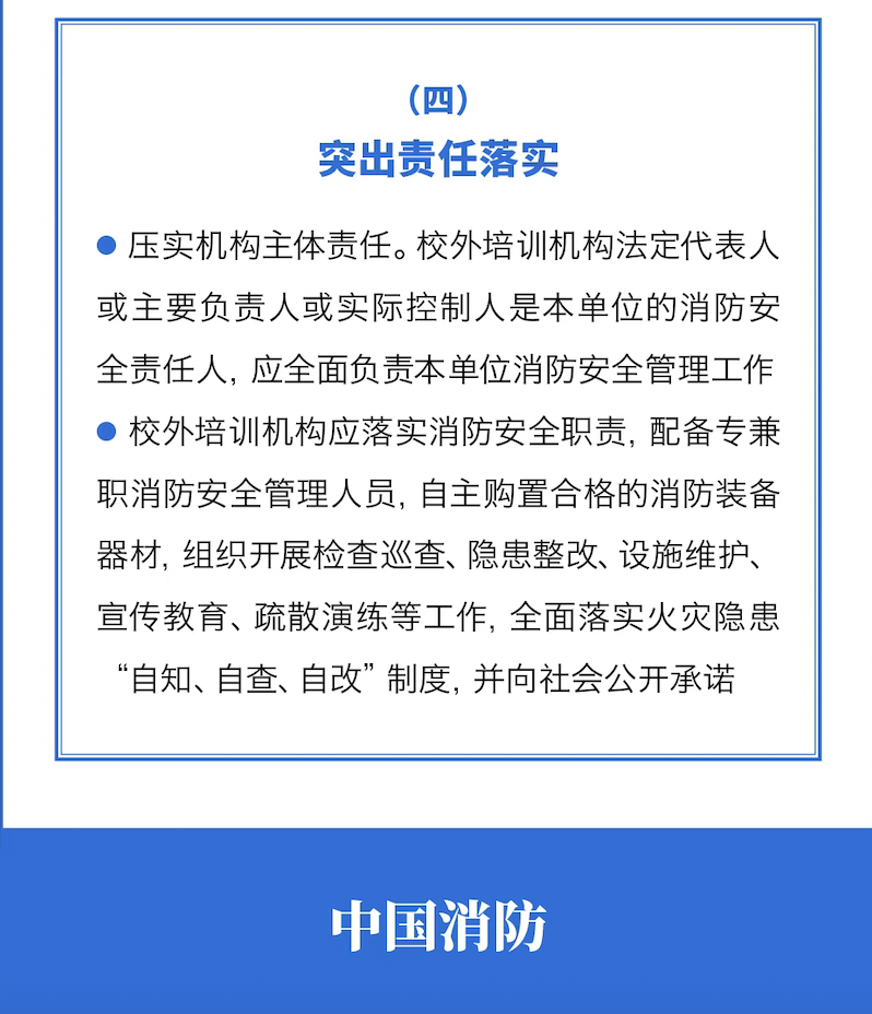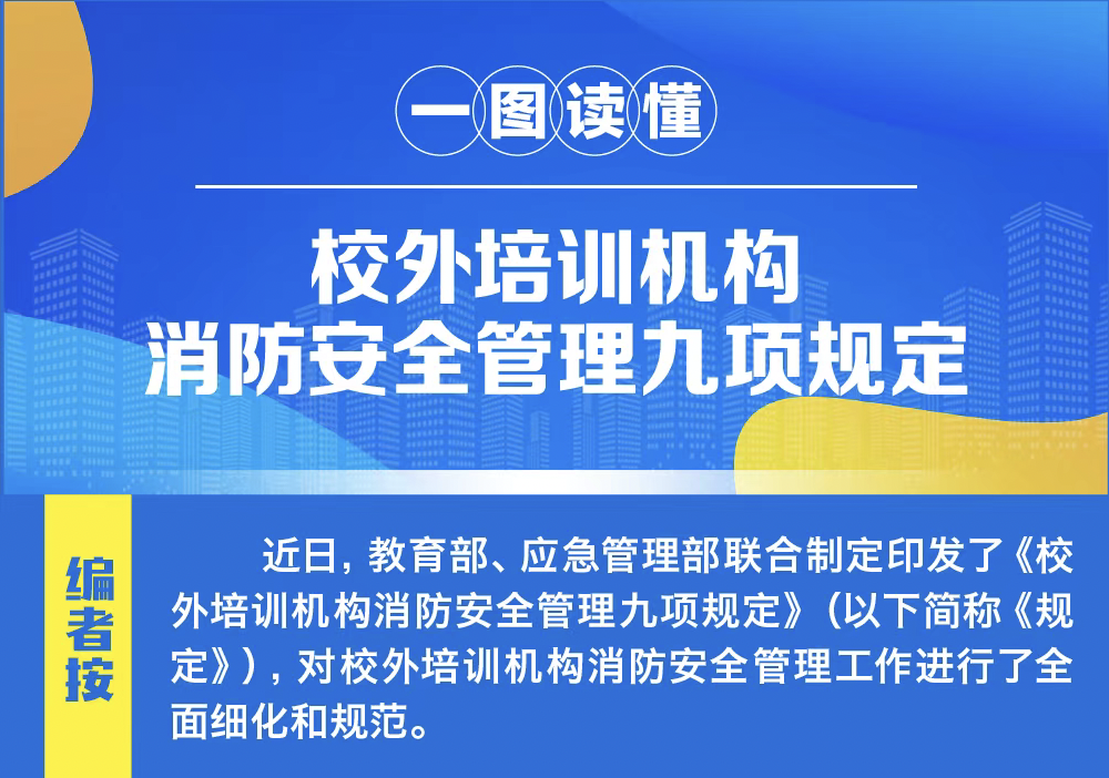 教育部、應(yīng)急管理部聯(lián)合印發(fā)《校外培訓(xùn)機(jī)構(gòu)消防安全管理九項(xiàng)規(guī)定》