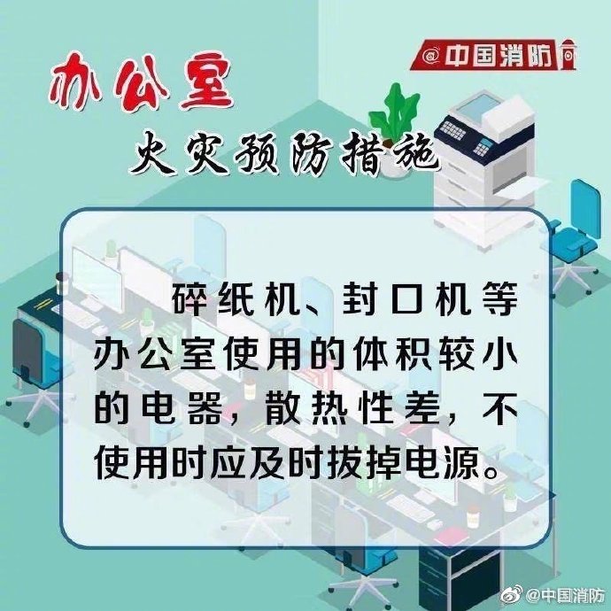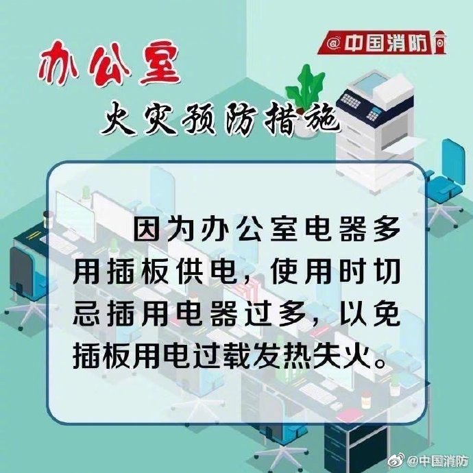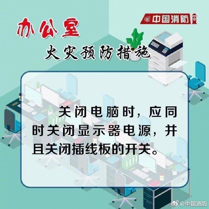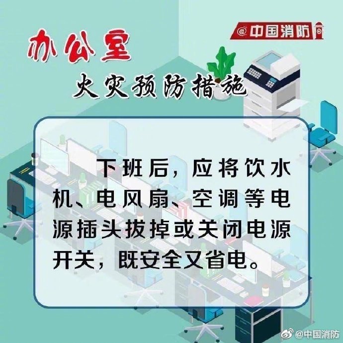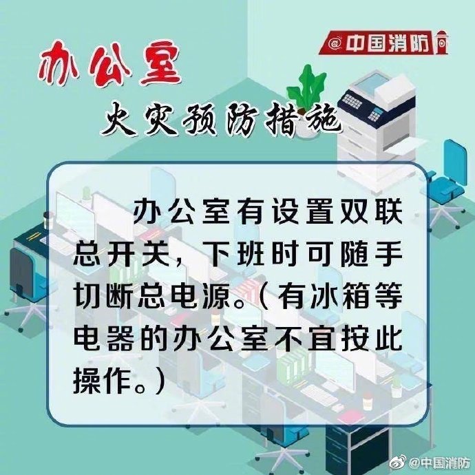 假期結(jié)束,上班打卡,別忘了打卡消防安全。辦公室這些火災(zāi)預(yù)防措施你還記得嗎?戳圖重溫,確保安全。