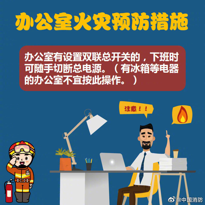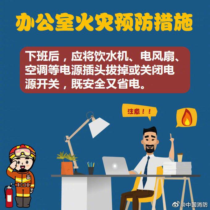 “五一”假期馬上就要來了,小伙伴們休假之前一定要檢查好辦公室消防安全哦,辦公室電器較多,切忌過載發(fā)熱失火,體積較小的電器使用完記得關(guān)閉電源,下班前檢查電源及線路……更多知識,戳圖了解~