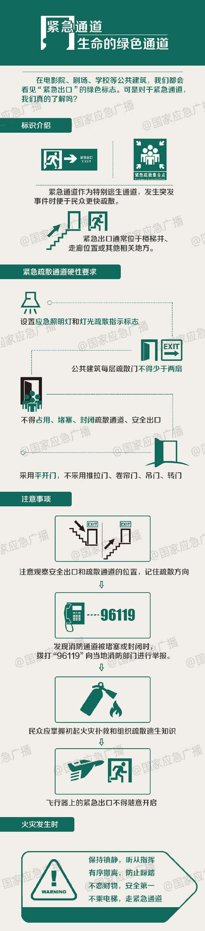 在電影院、劇場(chǎng)、學(xué)校等公共建筑,我們都會(huì)看見(jiàn)“緊急出口”的綠色標(biāo)志??墒菍?duì)于緊急通道,我們真的了解嗎?戳圖↓一起來(lái)學(xué)習(xí)吧!