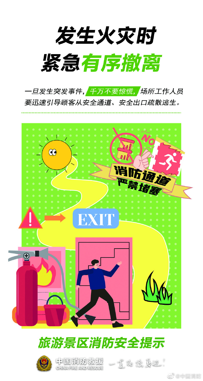 假期出行景區(qū)游玩時,要時刻注意消防安全,易燃易爆品不能帶進景區(qū),嚴(yán)禁違規(guī)使用明火,車輛按規(guī)定停放切勿擋住消防通道......藍(lán)朋友準(zhǔn)備了這份景區(qū)提醒,戳圖看吧~