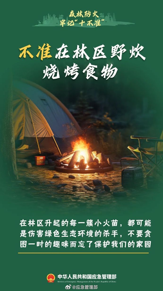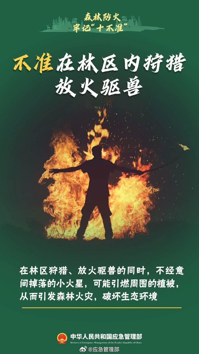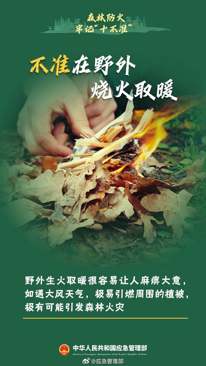 秋季天干物燥,森林里枯樹、落葉等可燃物較多,稍有不慎就有可能引發(fā)森林火災。不攜帶火種進山、不在野外燒火取暖、不煉山、不燒荒、不在林區(qū)上香燒紙…進入森林,千萬不要做這十件事↓↓