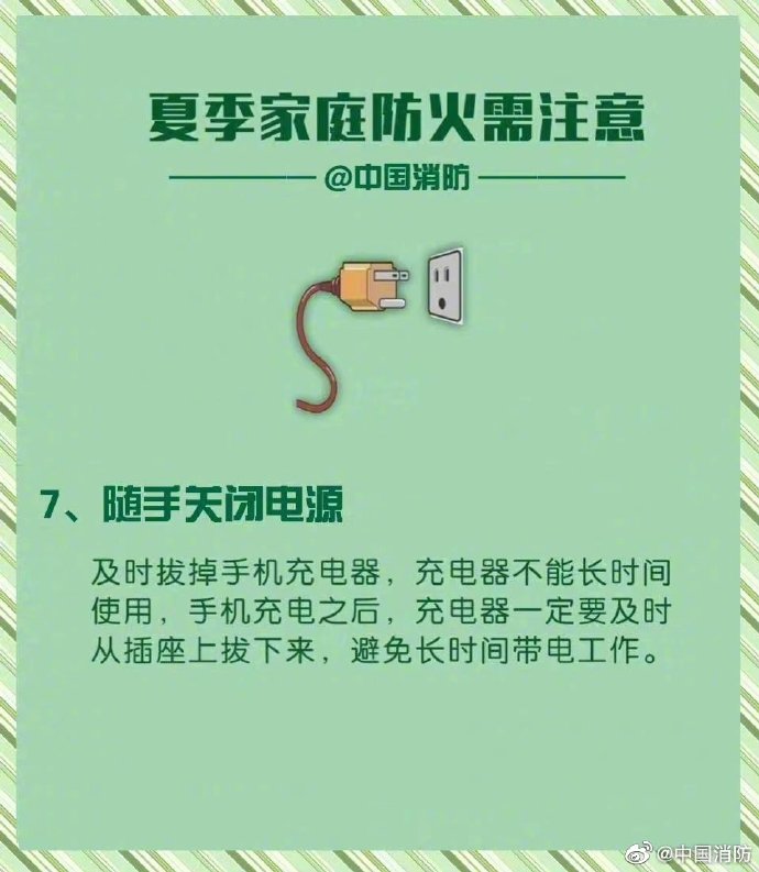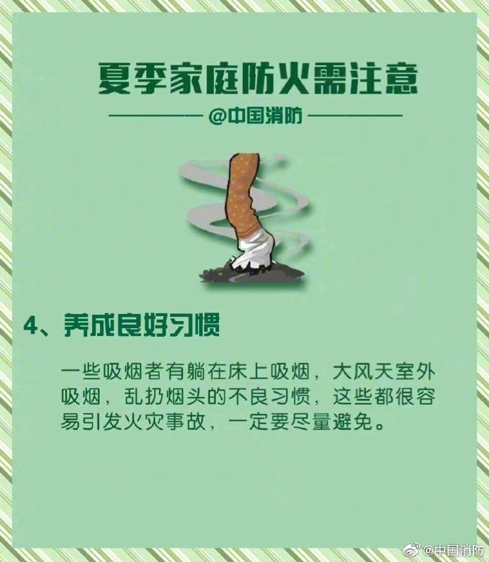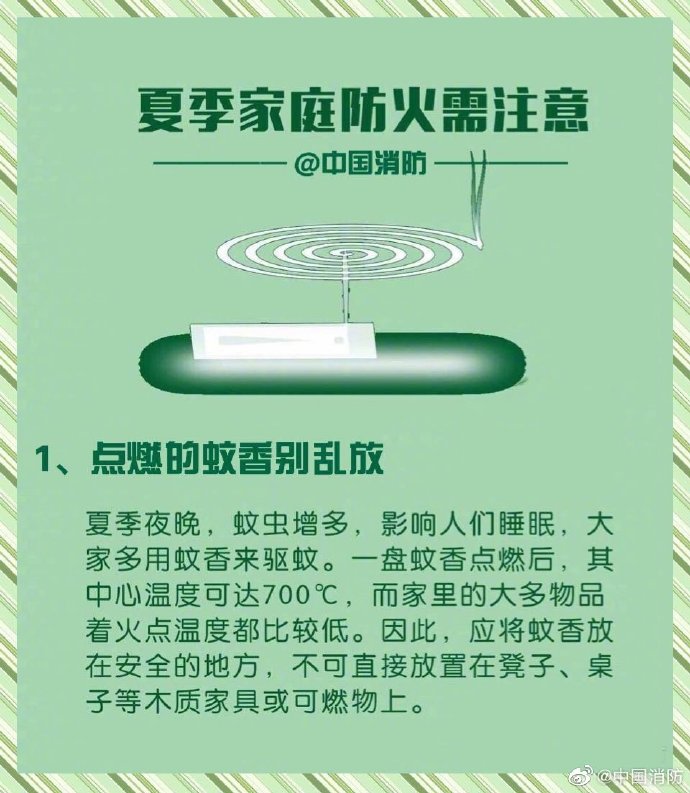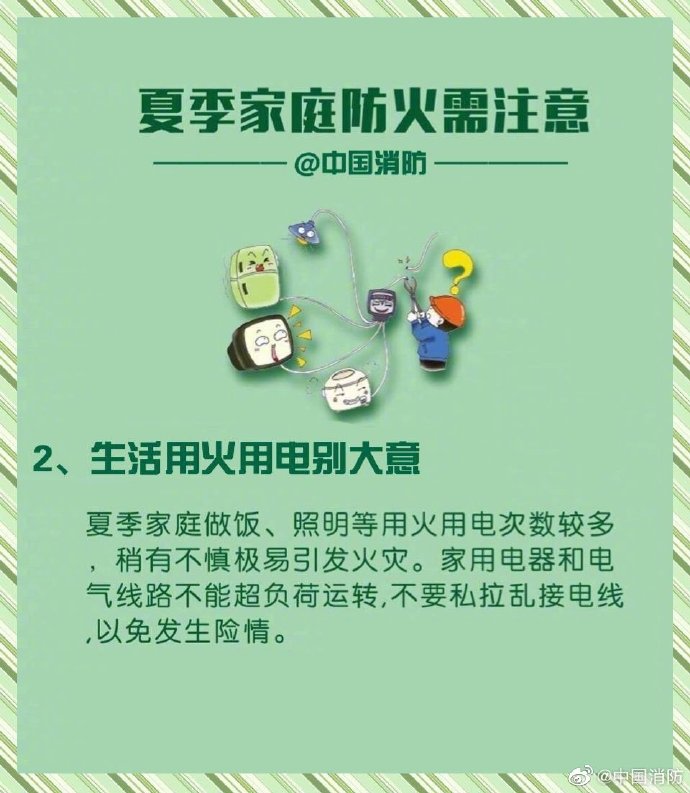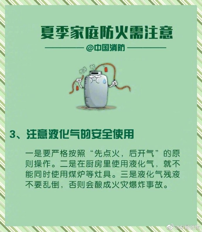 夏季連晴高溫,家庭火情頻頻發(fā)生。誘發(fā)火災(zāi)的因素有很多,一不小心就會(huì)釀成大禍。因此,家中絕不能存留火災(zāi)隱患,除了要做到定期檢查外,更要做到早發(fā)現(xiàn)早處理。這份家庭防火“八注意”,請(qǐng)快收下吧~戳圖