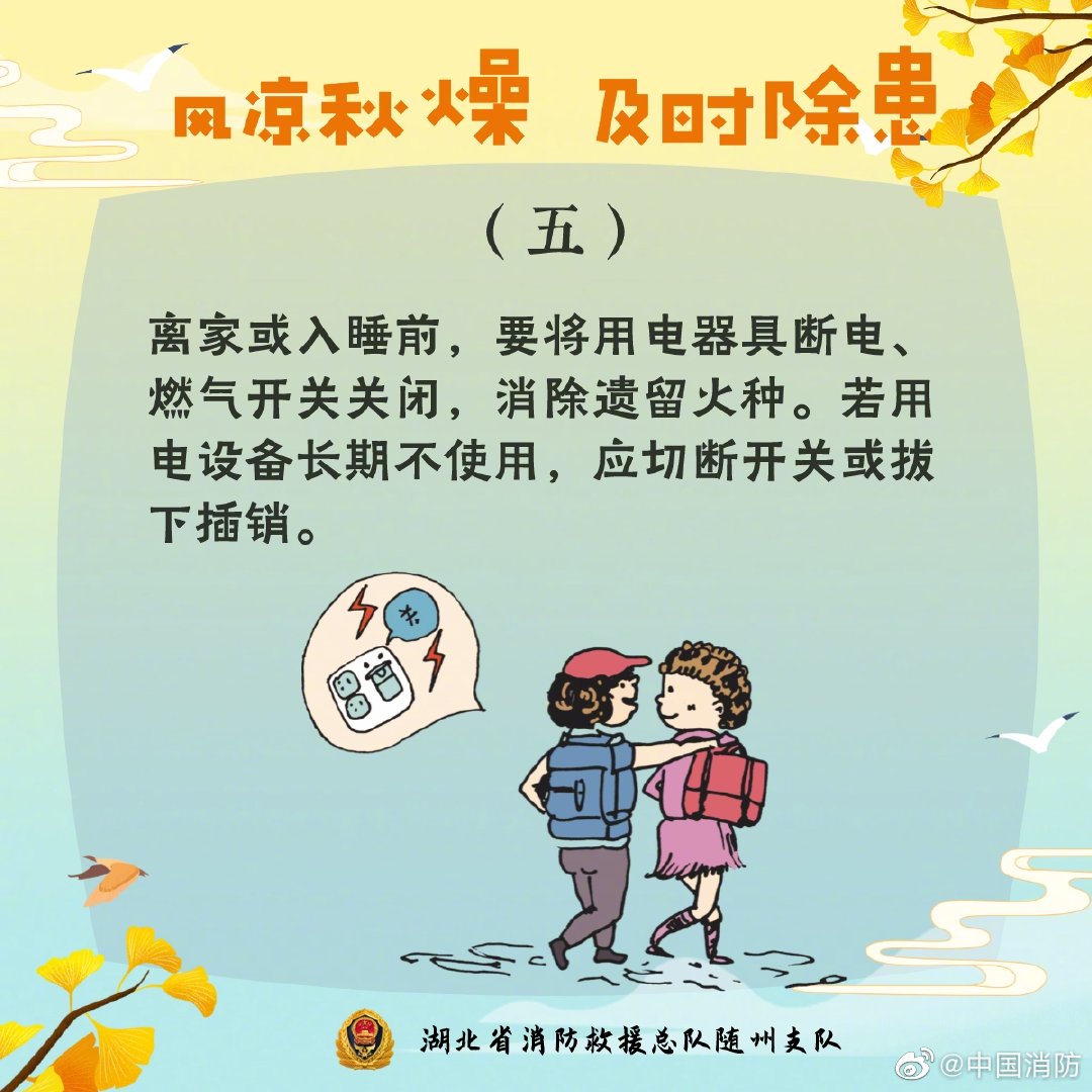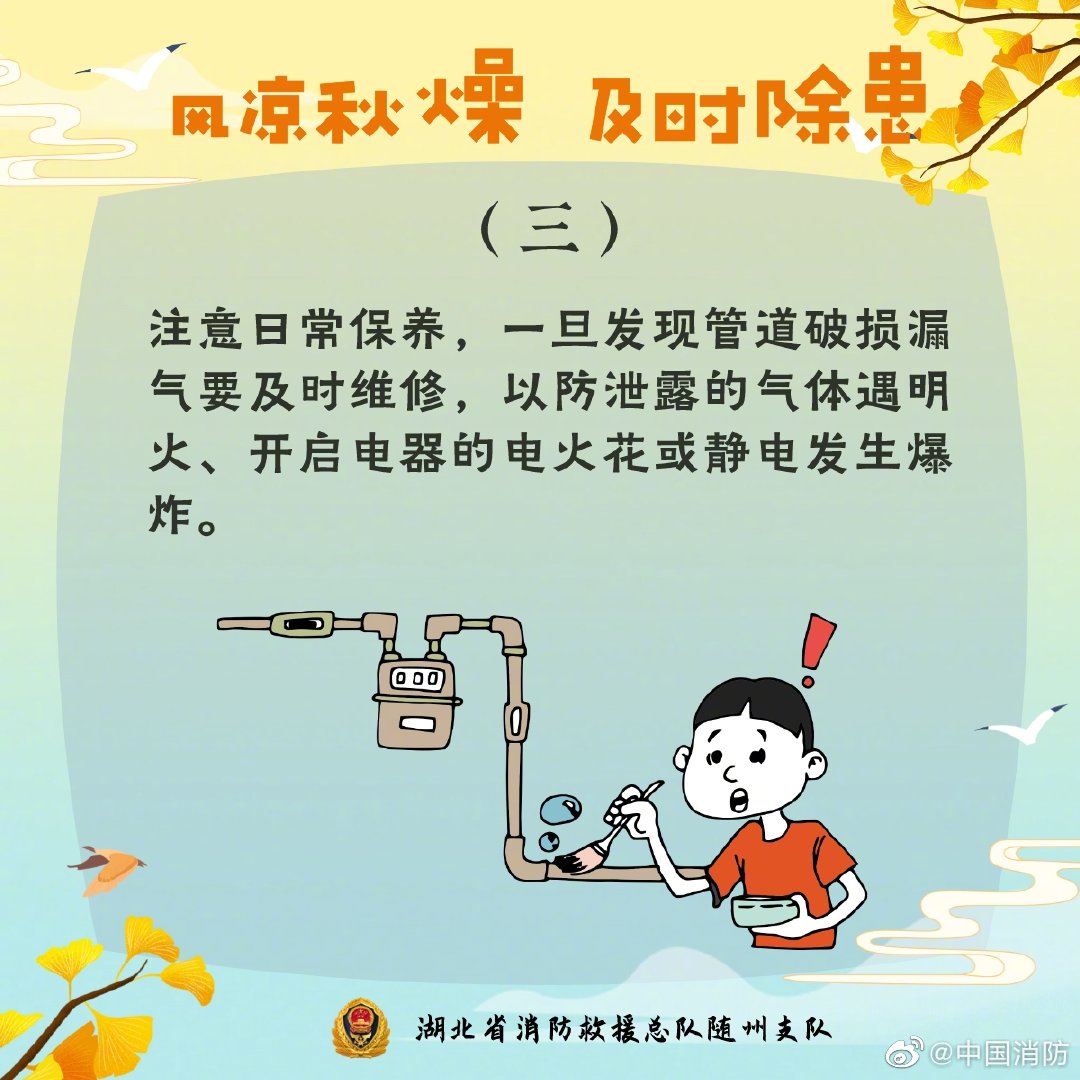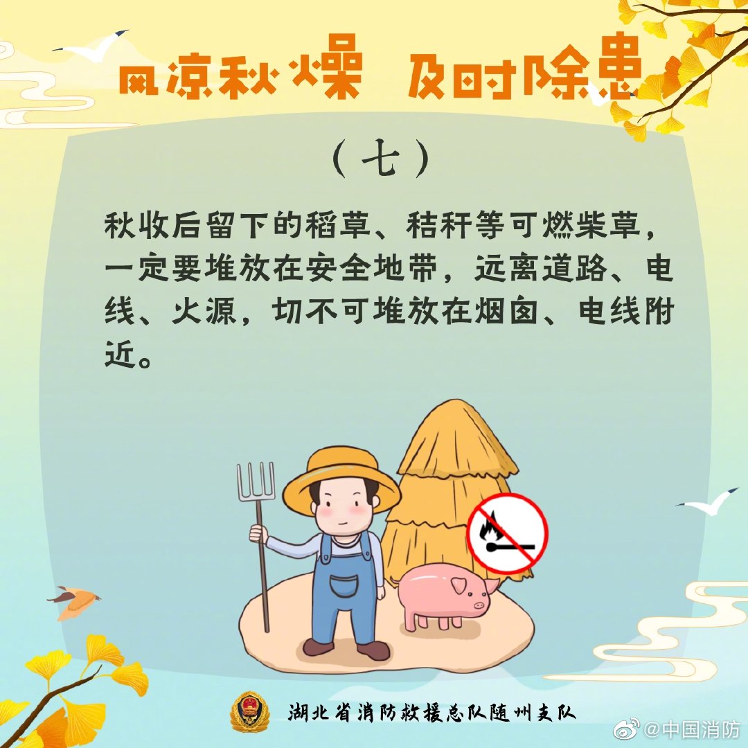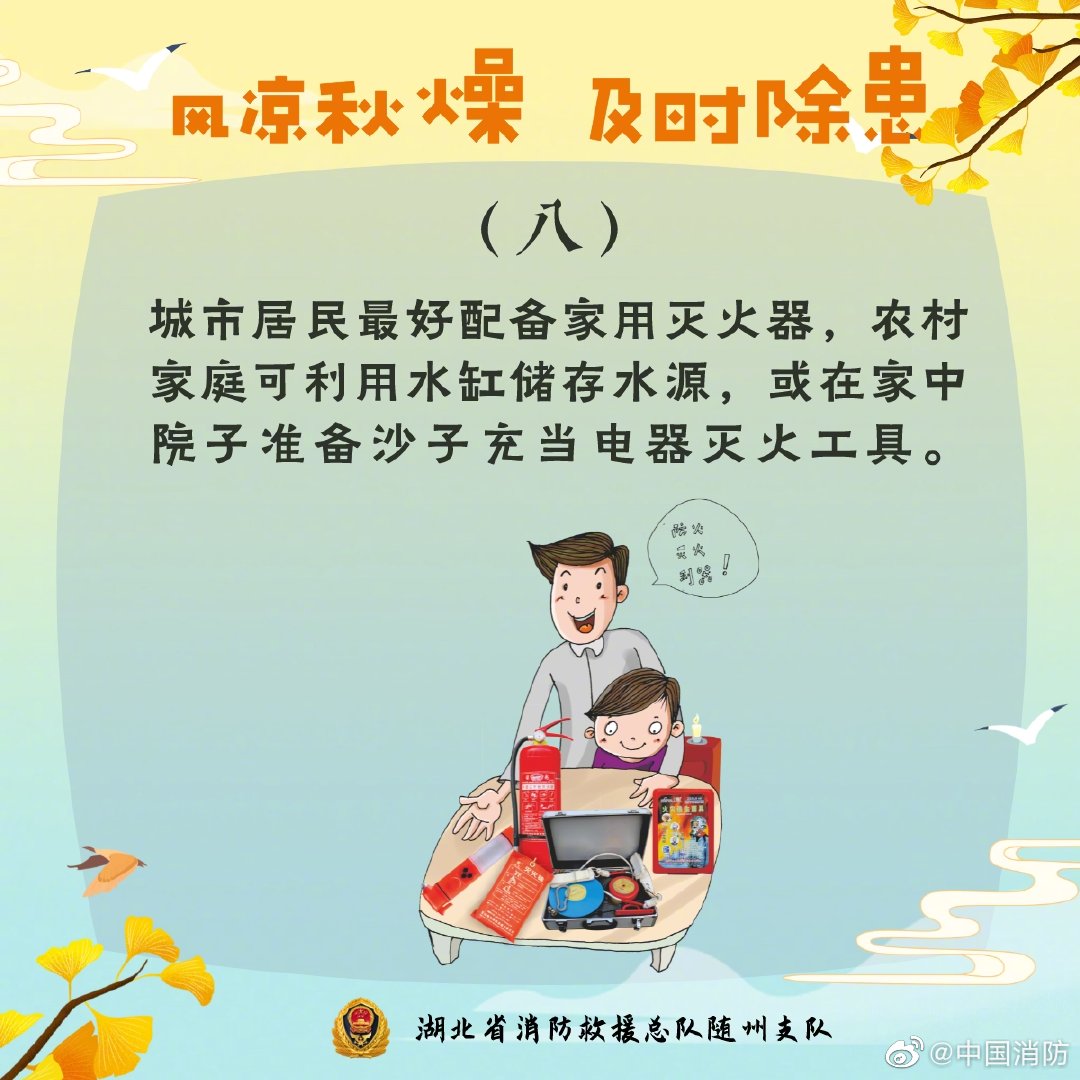 八月白露降,槐葉次第黃。白露過后秋意漸濃,風(fēng)蕭蕭落葉飄,天氣干燥,一旦遇到火苗極易發(fā)生火情!消防安全知識要記牢,秋風(fēng)涼秋燥,請及時除患!