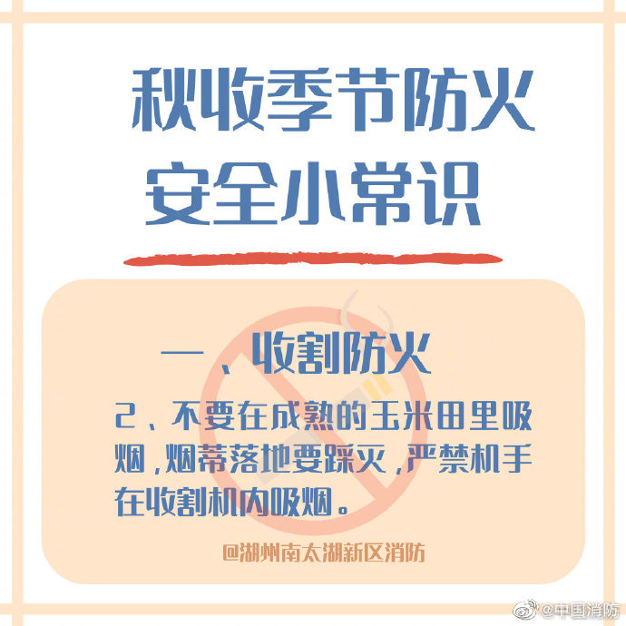 挖煙薯,掰棒子,又到了豐收季!大地豐收,莊稼隴黃,但入秋以來(lái)多地空氣干燥,稍有不慎,一個(gè)煙頭都有可能引發(fā)火災(zāi)。防火安全,時(shí)刻放在心上,這些知識(shí)要記牢。