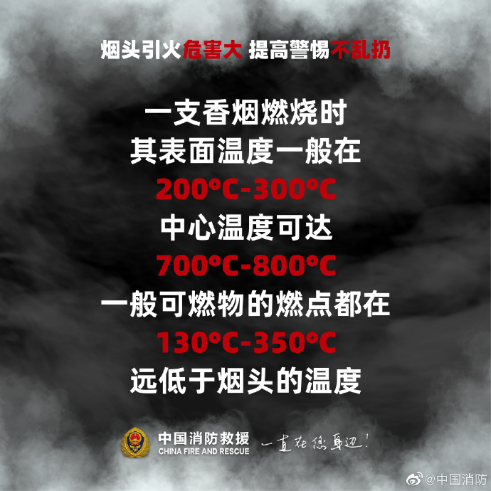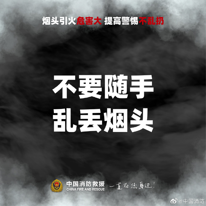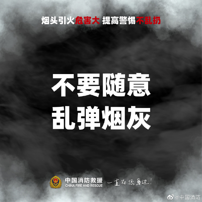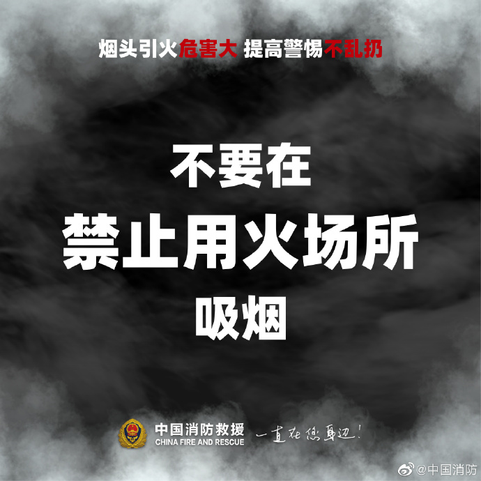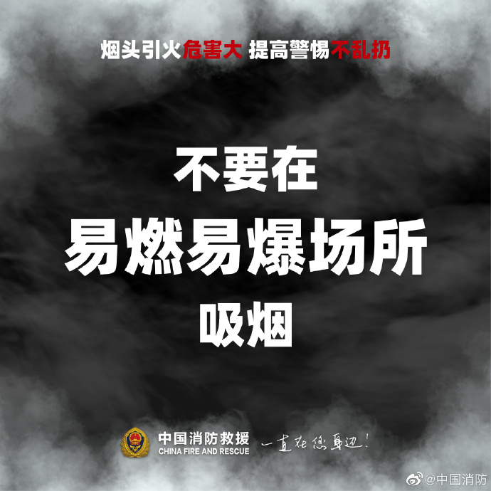 每年的5月31日是世界無煙日。吸煙不僅嚴重危害人類健康,隨意亂丟煙頭更可能造成火災(zāi)事故。注意吸煙消防安全,少抽一支煙,多一份安全,多一片藍色的天~
