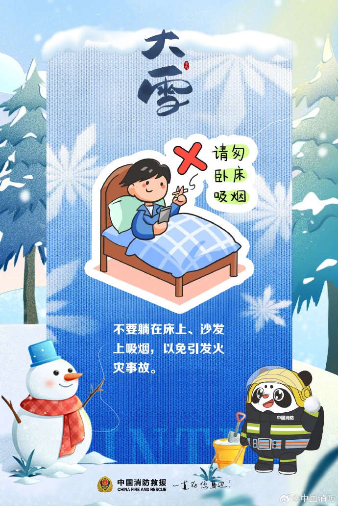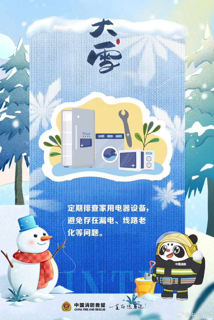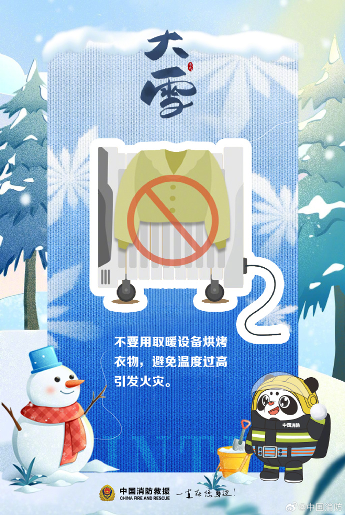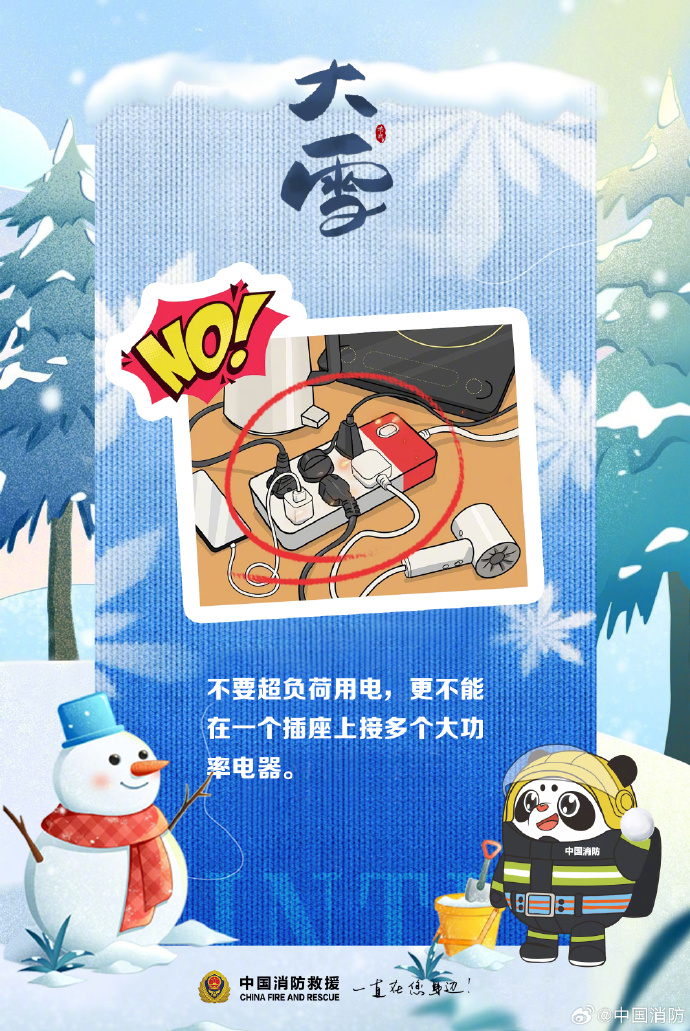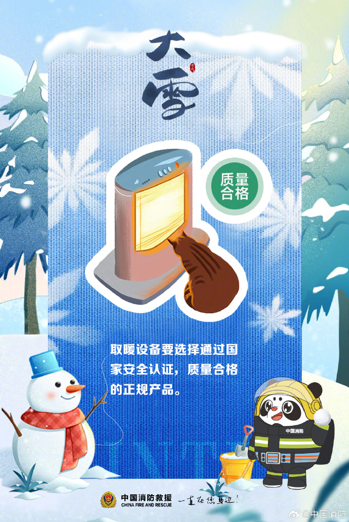 北京時間12月6日23時17分,我們將迎來一個浪漫的節(jié)氣——大雪 。大雪節(jié)氣意味著仲冬的來臨,冷空氣會更加活躍,各地降雪的概率也大大增加。為了防寒保暖,日常用火用電量急劇增加消防安全格外重要那么,都要注意哪些事項呢?