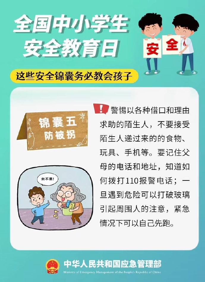兒童在生活中容易遇到哪些危險隱患?孩子們在面對危險時能夠正確自救嗎?每年3月最后一周的周一是全國中小學(xué)生安全教育日,這份安全錦囊,務(wù)必教會孩子↓↓