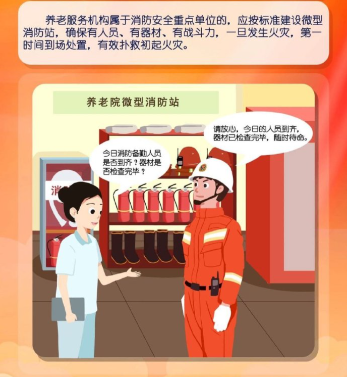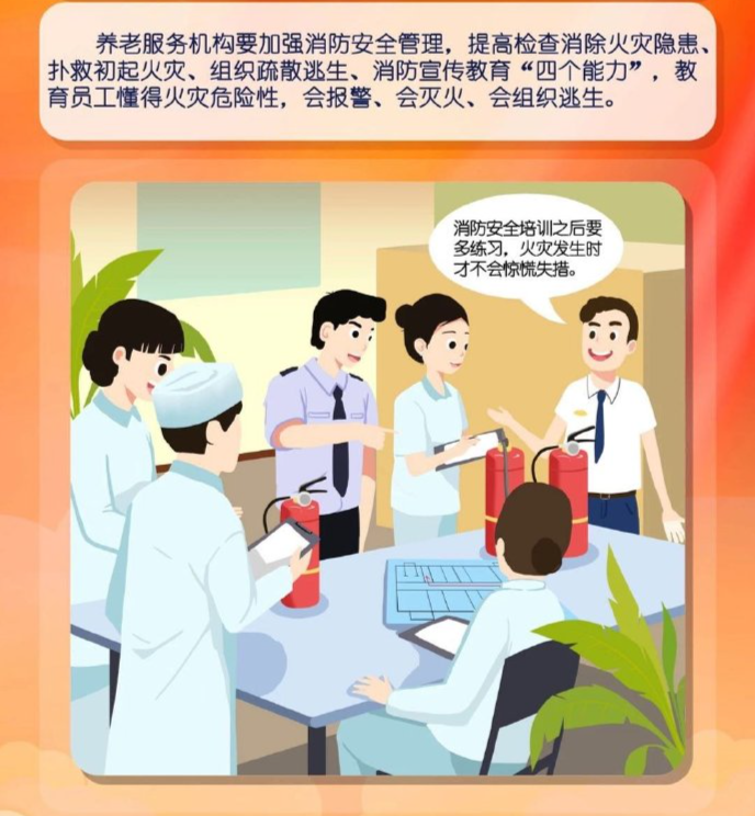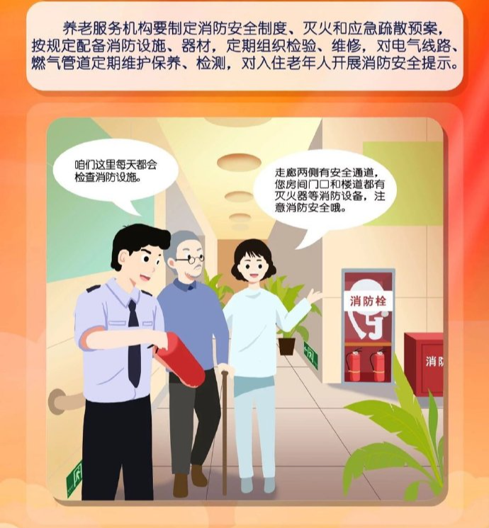 阿消提示:養(yǎng)老服務(wù)機(jī)構(gòu)里,多為行動不便的老年人,一旦發(fā)生火災(zāi)極易造成群死群傷事故。那么,養(yǎng)老機(jī)構(gòu)該如何預(yù)防火災(zāi)? 發(fā)生火災(zāi)又應(yīng)如何逃生? 這些消防安全知識要牢記!