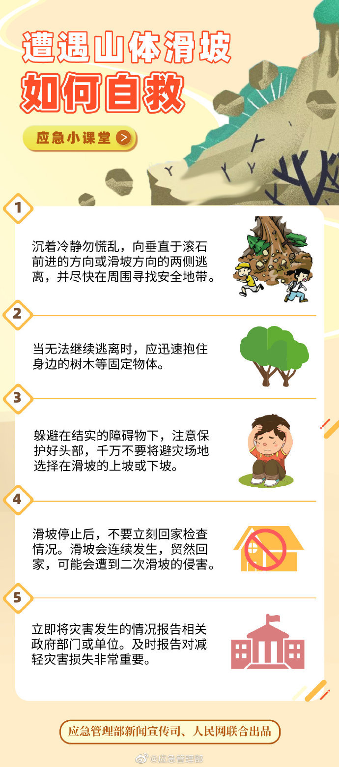 汛期,強降雨天氣多發(fā),易導致山體滑坡等地質(zhì)災害。山體滑坡非常危險,發(fā)生突然,來勢兇猛,破壞力巨大,經(jīng)常造成重大生命財產(chǎn)損失。遭遇山體滑坡如何自救?戳圖了解↓