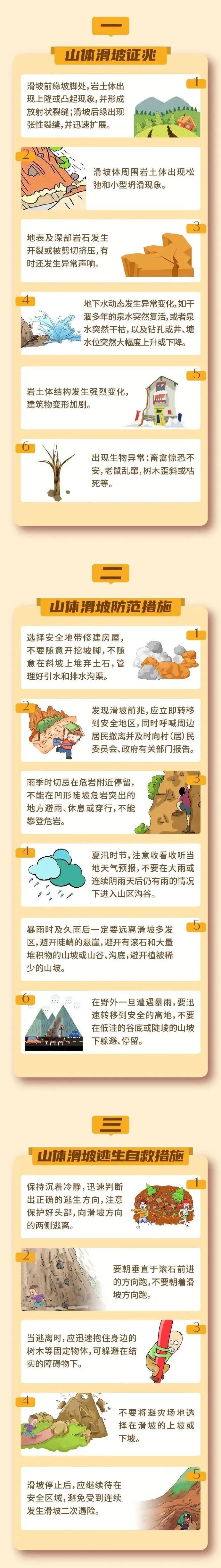 山體滑坡破壞力、危險性極大,極易造成人員傷亡和財產(chǎn)損失。山體滑坡有哪些征兆?當遭遇山體滑坡時,如何正確防范逃生自救?戳圖了解~