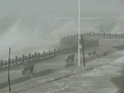 ?洶涌的波濤淹沒道路