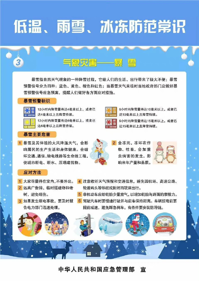 低溫、雨雪、冰凍天氣會(huì)對(duì)身體健康、安全生產(chǎn)、道路安全等造成不利影響。如何應(yīng)對(duì)低溫、雨雪、冰凍天氣?公路安全行車有什么技巧?戳圖了解↓↓