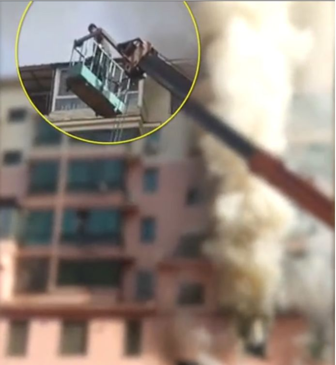 就在蘭郡澤犯愁的時候,他的父親蘭金龍趕了回來,幫兒子看著,指揮他,使吊筐貼窗戶更近一點,讓它們沒有距離,保證被救人員的安全。
