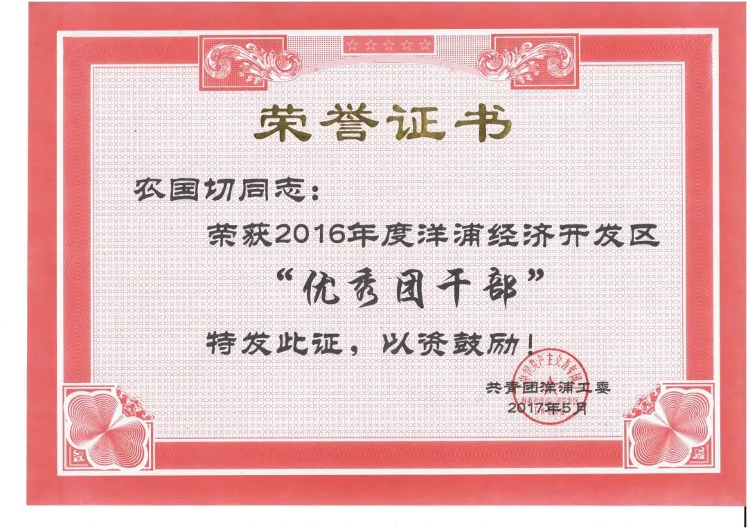 圖丨2017年獲評“優(yōu)秀團干部”