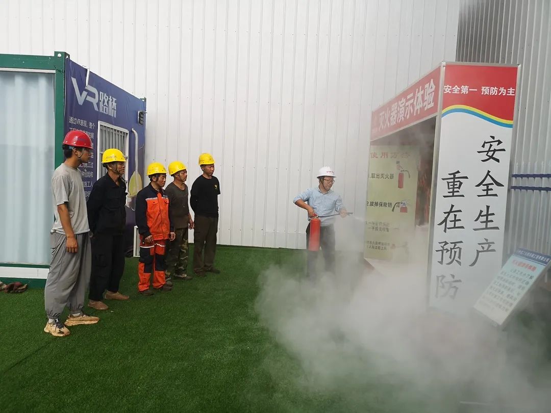 圖丨資西陽同志在項目消防安全體驗館為工人演示滅火器使用