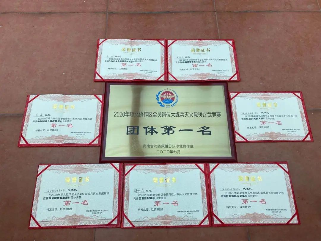 自組建以來,7次被評(píng)為全國青年文明號(hào),30余次被評(píng)為海南省消防隊(duì)伍基層建設(shè)標(biāo)兵單位和先進(jìn)黨(團(tuán))支部,15次榮獲全省崗位大練兵比武第一名。先后榮立集體二等功1次,集體三等功7次,10余人榮立二等功,120余人次榮立三等功,是一支具有30年光榮歷史的隊(duì)伍,也是一支滿載榮譽(yù)、敢打必勝的英雄隊(duì)伍。
