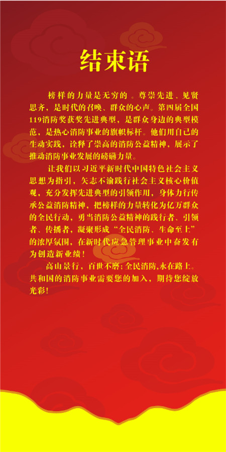 2012年中央批準(zhǔn)設(shè)立全國119消防獎,作為消防工作領(lǐng)域面向社會的最高獎項(xiàng),每兩年一屆。今年的評選表彰活動開展以來,應(yīng)急管理部黨組書記、副部長黃明高度重視,多次做出重要批示指示。近日,經(jīng)應(yīng)急管理部黨組研究同意,應(yīng)急管理部決定授予41個(gè)集體、44名個(gè)人第四屆全國119消防獎,并將于11月7日召開表彰大會。