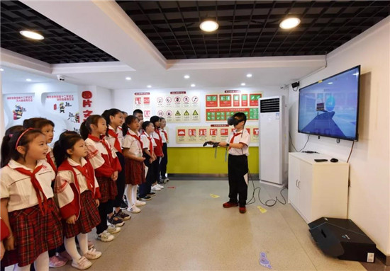 2015年,學(xué)?;I措資金150余萬元,建成全省第一所校園智慧消防安全教育體驗中心。 “遇到火災(zāi)如何逃生自救?”在體驗中心偌大的屏幕上剛出現(xiàn)這道題,3名小學(xué)生迅速按鍵搶答,系統(tǒng)根據(jù)答題結(jié)果自動打分并統(tǒng)計排名?!@是一場正在緊張上演的消防知識競賽。 在學(xué)校VR虛擬現(xiàn)實體驗區(qū),孩子們正帶著VR眼鏡,手握滅火設(shè)備,身臨其境體驗滅火……學(xué)生們在游戲、競賽中學(xué)習(xí)消防、體驗消防、了解消防。?