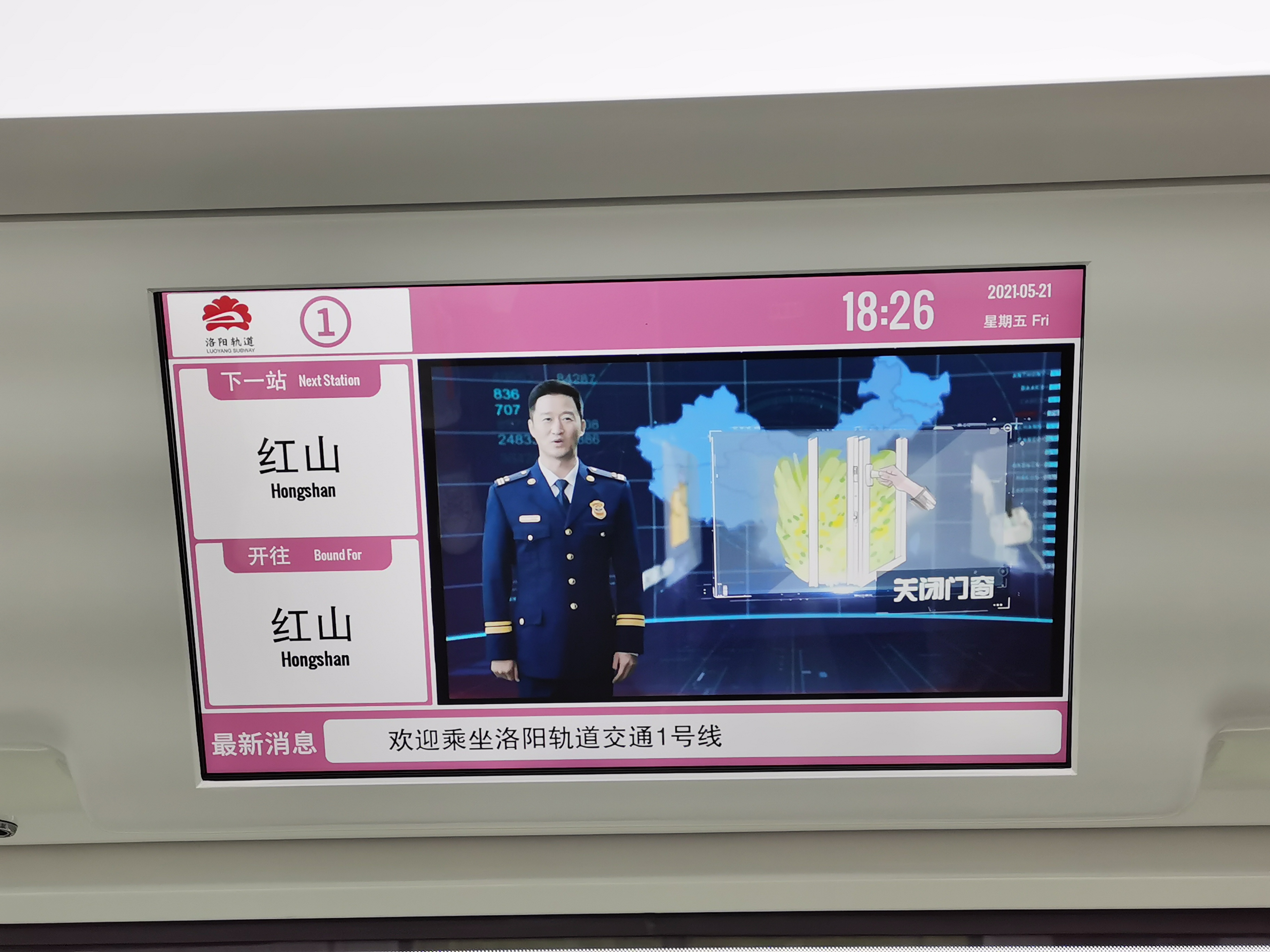 洛陽地鐵1號(hào)線投入運(yùn)營(yíng)以來,社會(huì)關(guān)注度很高。洛陽市消防救援支隊(duì)結(jié)合地鐵人流量大、站點(diǎn)多、沿線長(zhǎng)、客流集中等特點(diǎn),協(xié)調(diào)軌道交通集團(tuán)將站臺(tái)PIS顯示屏、車廂屏量身打造消防宣傳公益廣告專題視窗,在576個(gè)車廂屏、152個(gè)站臺(tái)屏同步播放,成為廣大市民學(xué)習(xí)消防知識(shí)的“流動(dòng)課堂”。