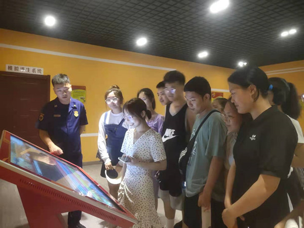 在大隊指戰(zhàn)員的帶領下,學生們先后參觀了大隊榮譽室、消防體驗館、戰(zhàn)斗班等。在大隊榮譽室內,一幅幅生動的圖畫以全方位、多角度、系統(tǒng)化的形式向前來參觀的學生們展示了大隊自建隊以來歷代消防指戰(zhàn)員在防火滅火工作及部隊建設中所取得的優(yōu)異成績和突出貢獻,充分展示了消防救援大隊的光榮歷史和精神風貌。