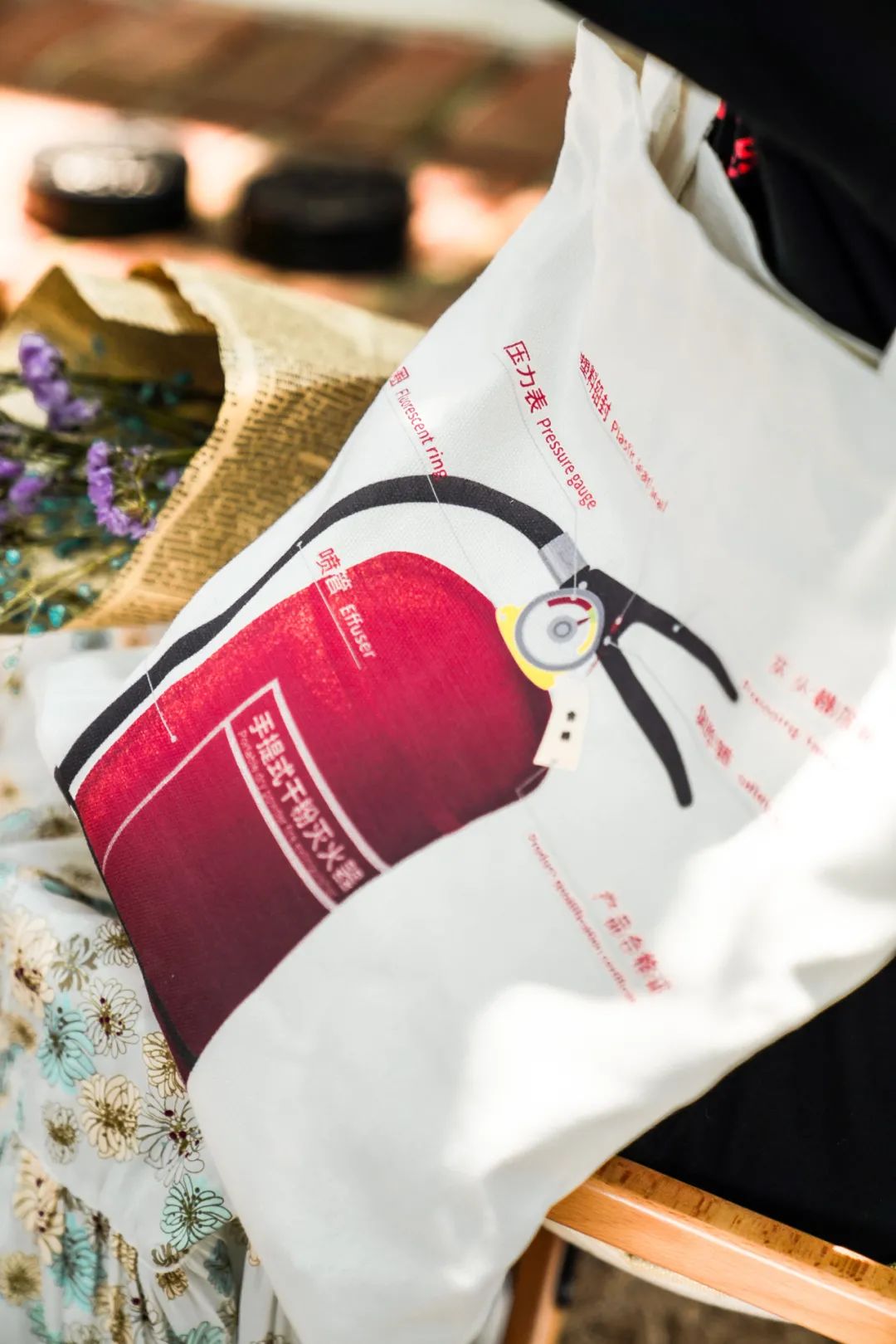 出街自然少不了購物。對于夏天來說,皮質(zhì)的包包顯得有些沉重了輕薄的帆布包似乎才是更好選擇。印花既是裝飾也是學習手冊上面的滅火器還能帶來一種心理上的“降溫”感。