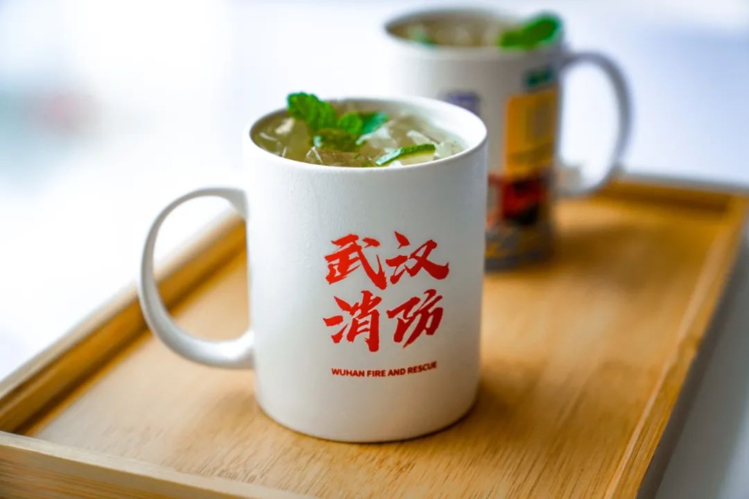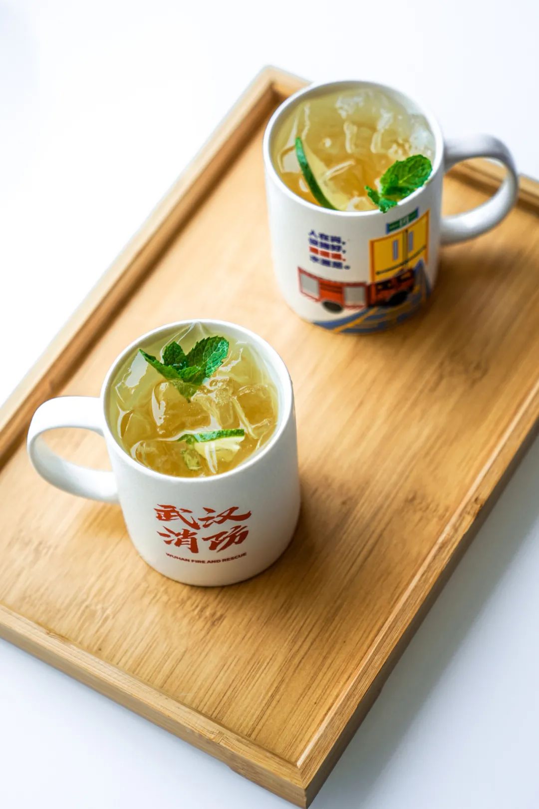 盛夏白瓷梅子湯。碎冰碰到杯壁當啷作響,沒有梅子湯用「武漢消防」的白瓷馬克杯 沖上一杯蜂蜜柚子茶也是極好的。