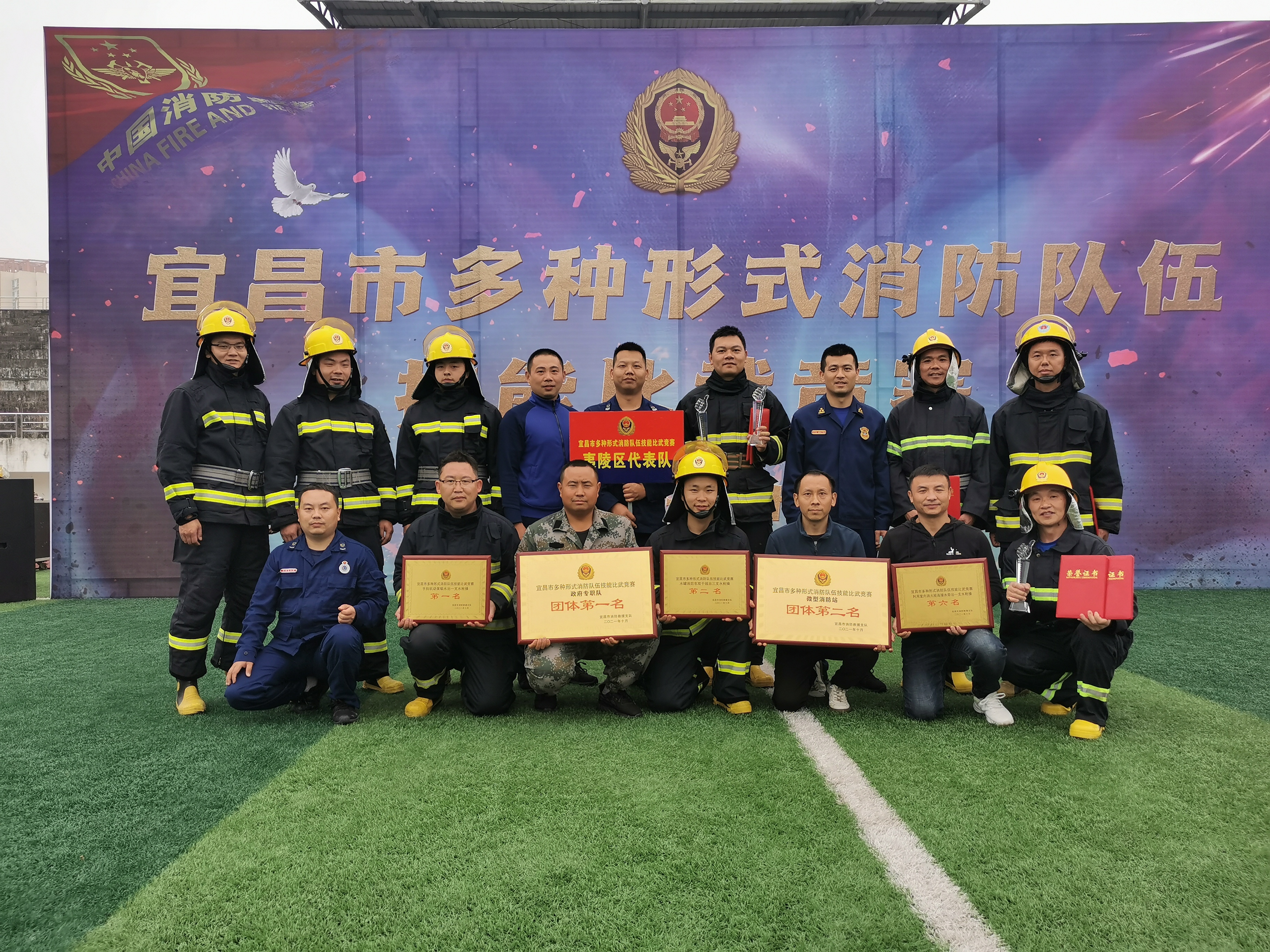 2021年10月29日,湖北省宜昌市舉行多種形式消防隊(duì)伍比武競(jìng)賽。夷陵大隊(duì)代表隊(duì)在比武競(jìng)賽中斬獲佳績(jī),喜獲政府專職隊(duì)團(tuán)體第一名,微型消防站團(tuán)體第二名,多個(gè)單項(xiàng)科目第一名的好成績(jī)。