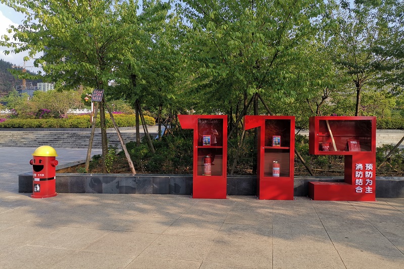 挺拔的青松,靜謐的河水,寬闊的廣場,青青的草地,漆紅考究的“119”座椅,生動(dòng)形象的消火栓垃圾桶……這便是主題公園內(nèi)的一景!