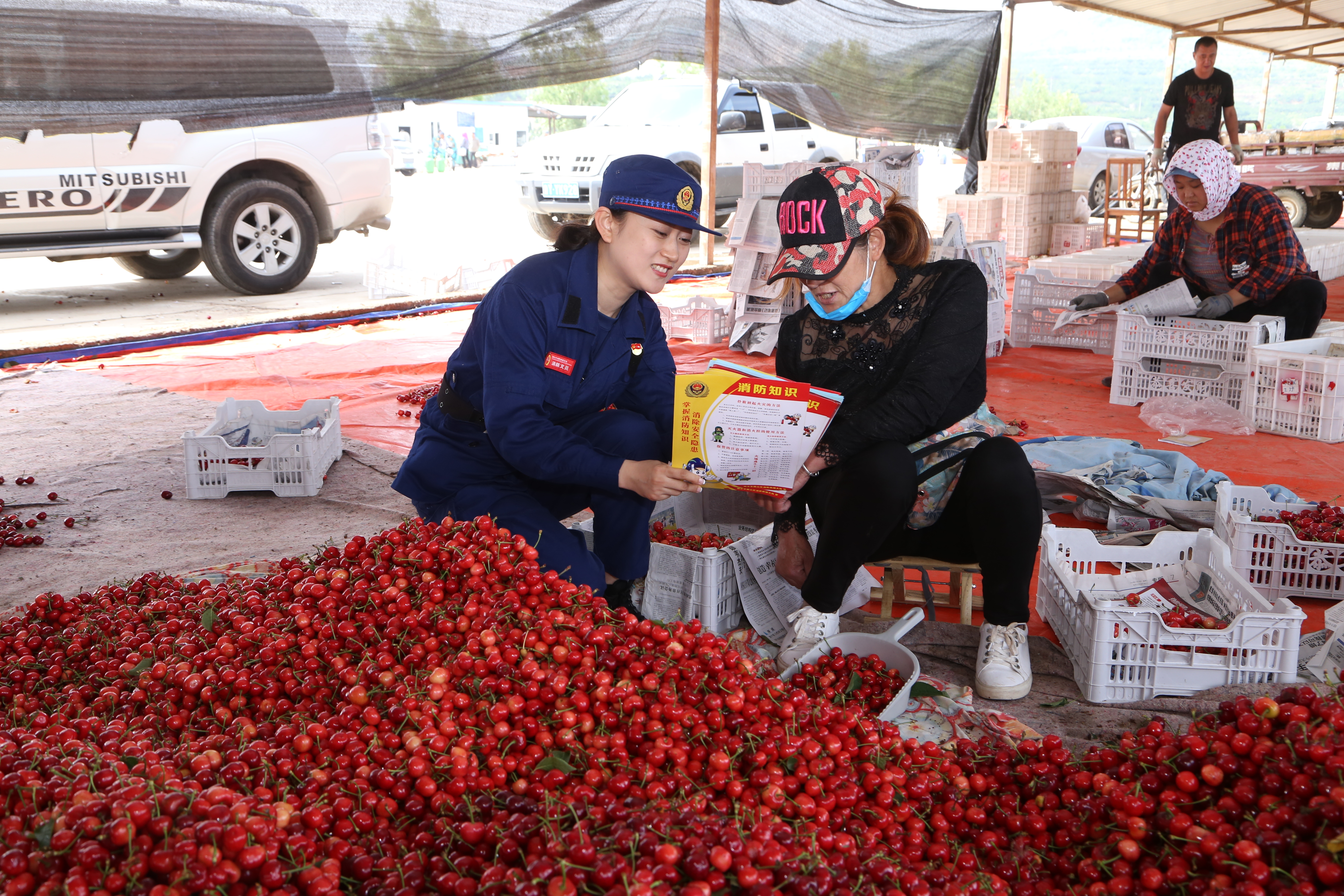 隨著大櫻桃的上市,各鄉(xiāng)鎮(zhèn)的櫻桃銷售市場陸續(xù)開市。為維護(hù)好櫻桃市場消防安全秩序,確保市場的安全運行。福山消防“女子服務(wù)隊”主動幫助市場負(fù)責(zé)人查找整改火災(zāi)隱患,規(guī)范消防安全管理,開展消防宣傳活動?;顒又?,服務(wù)隊女隊員們向果農(nóng)、收購商及過往群眾免費發(fā)放消防安全知識彩頁,提醒居民保持消防車通道暢通,注意用火用電安全等,并將消防提示彩頁統(tǒng)一張貼在電商物流包裹上,做好滲透性消防宣傳。