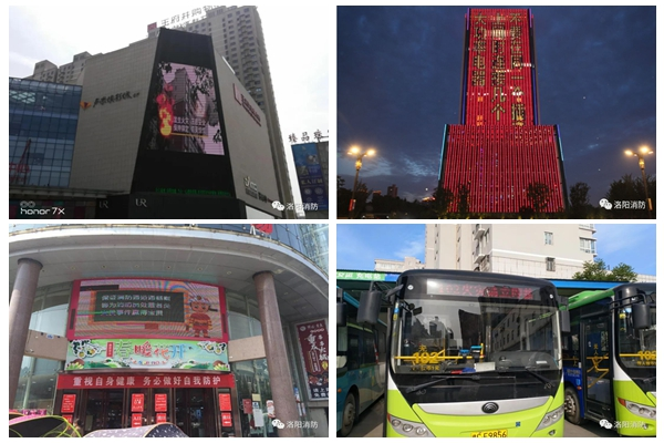 洛陽(yáng)消防協(xié)調(diào)正大國(guó)際、國(guó)寶大廈等核心地段地標(biāo)建筑設(shè)置樓體亮化宣傳提示幕墻;協(xié)調(diào)泉舜、建業(yè)、王府井等復(fù)工商圈和重點(diǎn)地段67處戶外大屏、2000余處電梯衛(wèi)士循環(huán)播放消防公益廣告、消防宣傳片等;協(xié)調(diào)重點(diǎn)單位和沿街門店千余塊LED電子顯示屏、室內(nèi)電視屏播放春季消防提示。利用全市電子顯示屏資源建立“公益聯(lián)盟”,時(shí)時(shí)刻刻提醒群眾注意消防安全,消除火災(zāi)隱患。